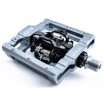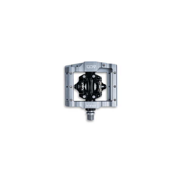 χαρακτηριστικά πεντάλ χωρίς κλιπ με μηχανισμό αιωρούμενου κλιπ διπλής όψης. Συμβατό με SPD. Σώμα από αλουμίνιο κατεργασμένο με CNC και άξονας CrMo. μεγάλη επιφάνεια επαφής? σχεδιασμός χαμηλού προφίλ. επτά αντικαταστάσιμες και ρυθμιζόμενες αντιολισθητικές ακίδες ανά πλευρά. σφραγισμένο ρουλεμάν τριβής φυσιγγίων και δύο σφραγισμένα ρουλεμάν φυσιγγίων