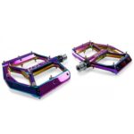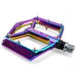 χαρακτηριστικά ελαφρύ επίπεδο πεντάλ? Σώμα από αλουμίνιο με φινίρισμα CNC και άξονας CrMo. λοξότμητες άκρες για βελτιωμένη απόσταση στις στροφές. μεγάλη επιφάνεια επαφής? εξαιρετικά χαμηλού προφίλ σχεδιασμό? εννέα αντικαταστάσιμες και ρυθμιζόμενες αντιολισθητικές ακίδες ανά πλευρά. σφραγισμένο ρουλεμάν τριβής φυσιγγίων και δύο σφραγισμένα ρουλεμάν φυσιγγίων