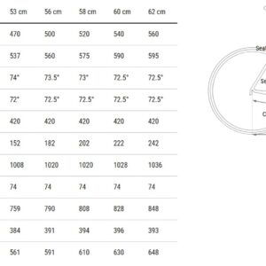 | SIZE | C/C | TOP TUBE LENGTH | SEAT TUBE LENGTH | SEAT TUBE ANGLE | HEAD TUBE LENGTH | CHAIN STAY LENGTH | HEAD TUBE ANGLE | REACH | STACK |